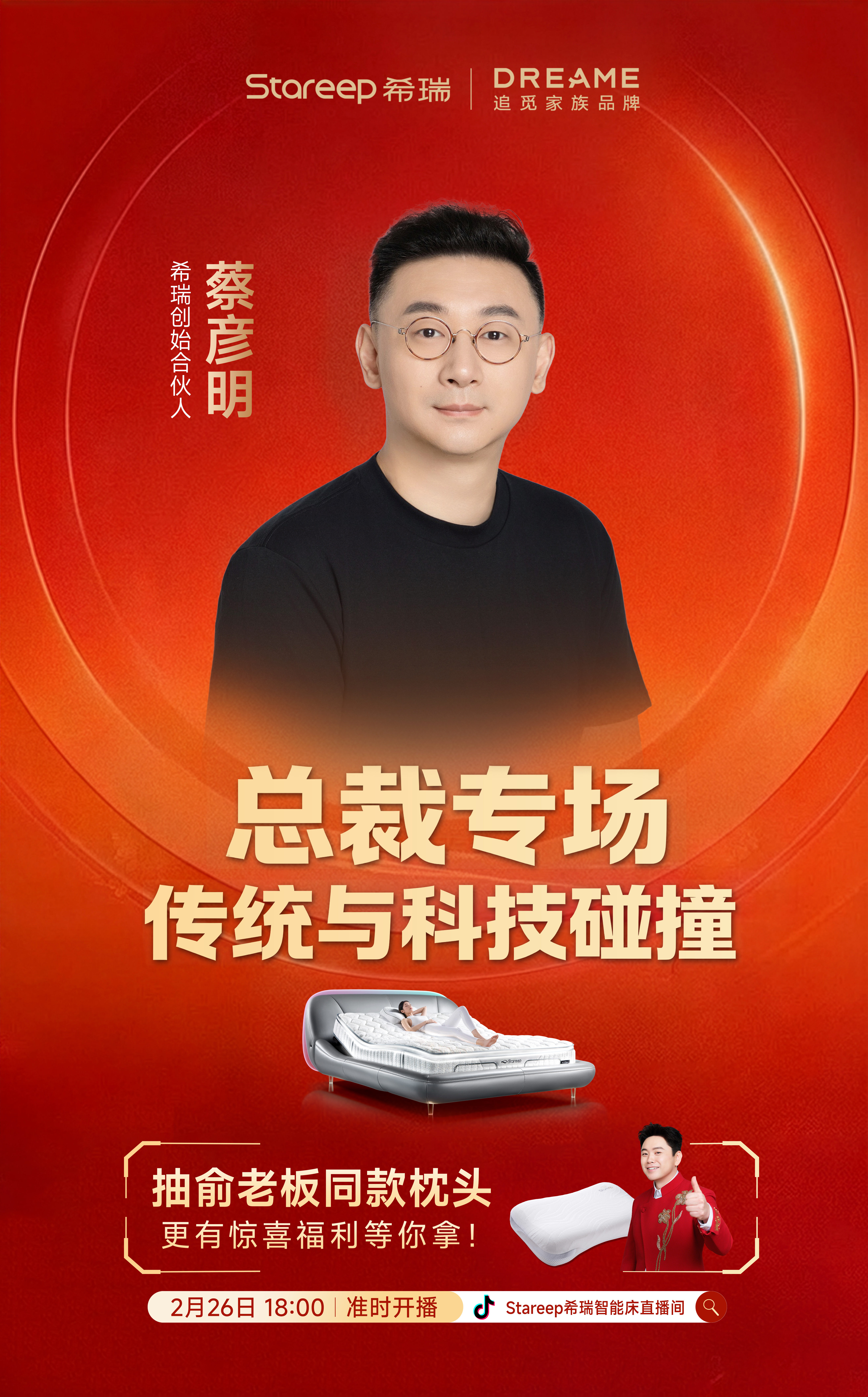 2月26日晚,希瑞智能床创始合伙人蔡彦明以一场别开生面的“睡衣直播”,拉开了品牌2026年全球化战略的序幕。这场在抖音平台进行的直播,没有枯燥参数的轰炸,而是以近乎“沉浸式”的体验,直观展示了希瑞智能床的AI智能睡眠技术体系。